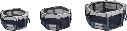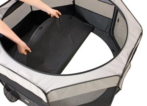 Cestovná ohrádka pre psov je praktická a ľahká. Jednoducho sa zloží do veľkosti tašky, a preto si ju môžete vziať všade so sebou. V prednej a zadnej časti je vstupný otvor na zips. Vrchná sieťka je odnímateľná. Praktické vrecko na bočnej strane Vám umožní uschovať potrebné veci.