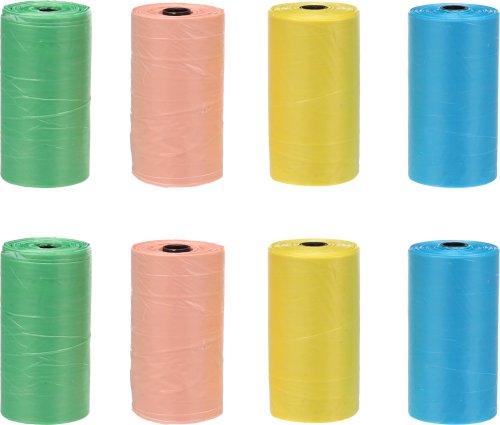 S týmito pestrofarebnými vrecúškami budete ekologickejší a vždy pripravení na nečakaný „darček“ od Vášho chlpatého kamaráta. Vyrobené zo 65 % z recyklovaného plastu. S 8 rolkami po 15 sáčkoch ste dobre pripravení na každú prechádzku. Urobte si z upratovania po Vašom štvornohom kamarátovi !