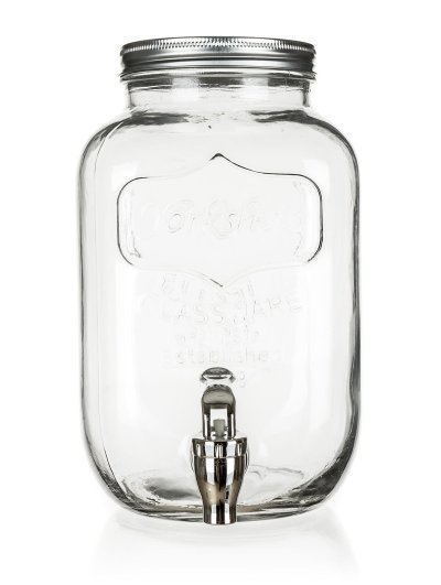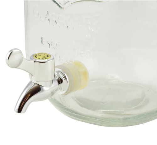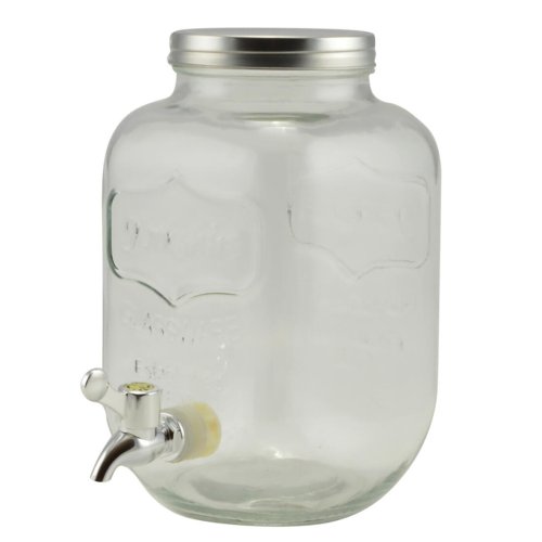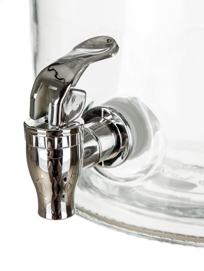 Sklenený zásobník na nápoje BRISA, s objemom 4 l, slúži na servírovanie osviežujúcich nápojov na oslavách a letných párty. Zásobník je vyrobený z kvalitného číreho skla a je vybavený praktickým plastovým kohútikom na dávkovanie nápojov. Zásobník je určený na podávanie iba chladných a sviežich letných nápojov typu domáca limonáda, ovocný džús, ľadový čaj a podobne. Široké hrdlo umožňuje do nádoby pohodlne vkladať ľad alebo kúsky ovocia.