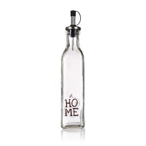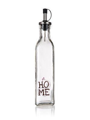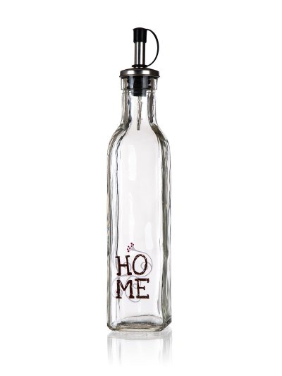 Fľaša na olej 250 ml HOME, sklenená. objem: 250 ml Fľaša na olej s dekorom HOME hranatého tvaru, vyrobená zo skla, je ideálny pomocník do kuchyne.