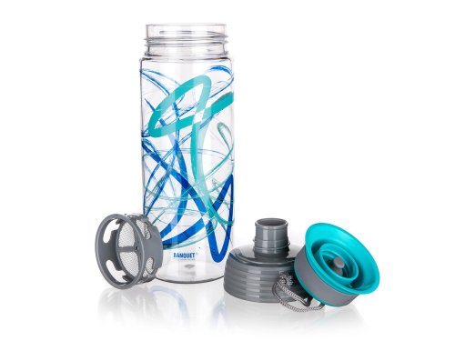 objem: 550 ml materiál: plast, nerez farba: transparentná, modrá potlač