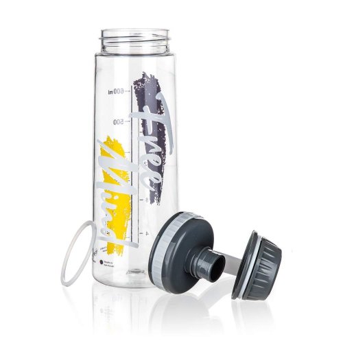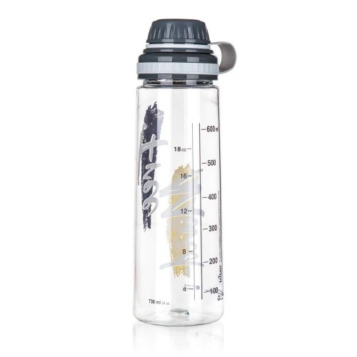 objem: 750 ml priemer: 7 cm výška: 25 cm materiál: plast farba: transparentná, sivá potlač