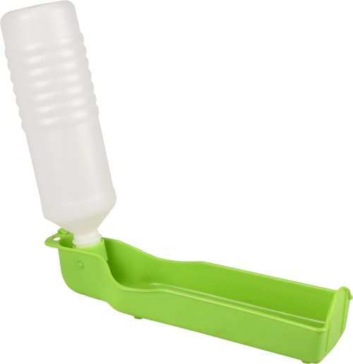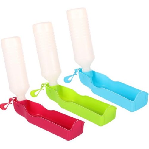 Cestovná napájačka sa skladá z fľaše a uzáveru s výklopnou miskou. Misku tak možno jednoducho plniť vodou priamo pri napájaní. Pre ľahšie čistenie je možné misku odskrutkovať. Praktická cestovná fľaša má karabínku na pripevnenie napr. na batoh a očko na prevlečenie šnúrky či popruhu na nosenie cez rameno. Objem: 750 ml Rozmery (cca): 30 × 8 × 7,5 cm Materiál: plast Farba: ružová, zelená alebo modrá (zasielame podľa aktuálnej skladovej zásoby)