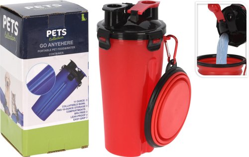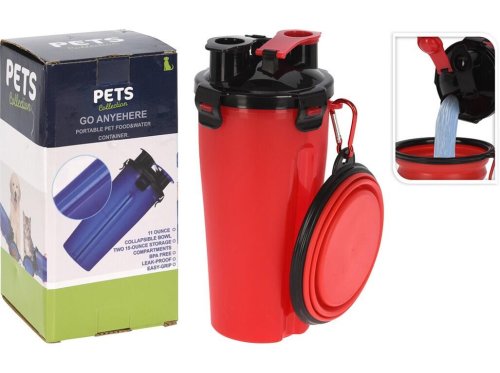 Fľaša pre psa 2dielna voda/krmivo, s miskou, PH mix farieb.