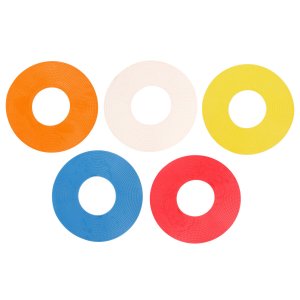 Značka na podlahu Merco Flat Ring je praktická cvičebná pomôcka, vďaka ktorej vytvoríte počas chvíľky tréningovú dráhu podľa svojich predstáv. Táto sada sa skladá z dvadsiatich kruhov vyrobených z elastickej termoplastickej gumy (TPR), s vonkajším priemerom 19 cm, vnútorným priemerom 8 cm a hmotnosť jedného kruhu je približne 60 g. Vďaka použitému materiálu sú značky vhodné pre vonkajšie tréningy aj do telocviční. Sada je zabalená v praktickej polyesterovej sieťke so sťahovaním na šnúrku. - sada: 20 značiek - materiál: TPR - vonkajší priemer: 19 cm - vnútorný priemer: 8 cm - výška: 2 mm - hmotnosť značky: cca 60 g - hmotnosť sady: cca 1,2 kg - dodávané v praktickej sieťke