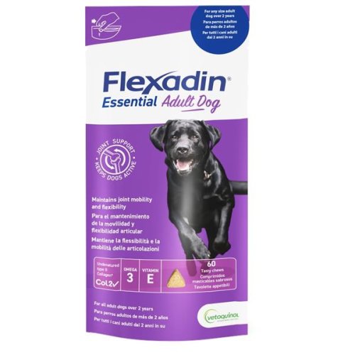 jedinečné a kompletné zloženie piatich vysoko kvalitných zložiek pre všetkých dospelých psov, staršie ako 2 roky inovatívne zloženie obsahujúce nedenaturovaný kolagén typu II (UC – II), ktorý je dôležitou súčasťou kĺbovej chrupavky prítomnosť UC – II podporuje prirodzený proces regenerácie kĺbovej chrupavky vďaka priaznivému imunomodulačnému účinku preukázanými pozitívnymi a dlhodobými účinkami iba jedna ochutená tableta denne pre každého psa bez ohľadu na telesnú hmotnosť 60 tabliet – 2-mesačná kĺbová výživa pre vášho psa