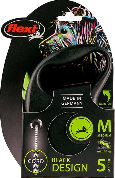 "Black is back"! Moderný ergonomický dizajn, komfortný brzdový systém a zdokonalené vedenie pásky. To všetko v 4 farebných variantoch. Je možné pridať Multi Box pre ukladanie maškrty či sáčkov (od veľkosti S). Rodinná firma flexi vyrába výhradne na území Nemecka. V závode v Bargteheide pri Hamburgu vzniká všetko, počnúc návrhom až po výrobu vysoko kvalitných vodítok – Made in Germany. Firma flexi je vynálezcom samonavíjacieho vodítka a jednotkou na svetovom trhu, exportuje do viac ako 90 krajín sveta. Originálne samonavíjacie vodítka flexi sa vyznačujú patentovaným, po technickej stránke najmodernejším pružinovým systémom a komfortným ovládaním. Sú vyrábané z vysoko kvalitných materiálov, exkluzívne manuálne spracované a zostavené. Vodítka prechádzajú pred expedíciou mnohými kontrolami kvality. Veľkosť: M – vhodné pre psy s hmotnosťou do 20 kg. Typ vodítka: Navíjacie - lanko. Dĺžka opasku/lanka: 5 m Farba: zelená