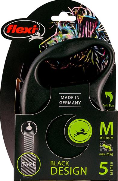 "Black is back"! Moderný ergonomický dizajn, komfortný brzdový systém a zdokonalené vedenie pásky. To všetko v 4 farebných variantoch. Je možné pridať Multi Box pre ukladanie maškrty či sáčkov (od veľkosti S). Rodinná firma flexi vyrába výhradne na území Nemecka. V závode v Bargteheide pri Hamburgu vzniká všetko, počnúc návrhom až po výrobu vysoko kvalitných vodítok – Made in Germany. Firma flexi je vynálezcom samonavíjacieho vodítka a jednotkou na svetovom trhu, exportuje do viac ako 90 krajín sveta. Originálne samonavíjacie vodítka flexi sa vyznačujú patentovaným, po technickej stránke najmodernejším pružinovým systémom a komfortným ovládaním. Sú vyrábané z vysoko kvalitných materiálov, exkluzívne manuálne spracované a zostavené. Vodítka prechádzajú pred expedíciou mnohými kontrolami kvality. Veľkosť: M – vhodné pre psy s hmotnosťou do 25 kg. Typ vodítka: Navíjací – opasok. Dĺžka opasku/lanka: 5 m Farba: čierna