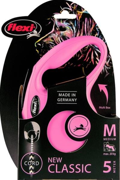 Vodítko základného radu New Classic sa vyznačuje jednoduchými tvarmi a maximálnou funkčnosťou za prijateľnú cenu. Vylepšený brzdový systém s krátkym zdvihom umožňuje viac kontroly. Je možné pridať aj Multi Box (od veľkosti S) pre ukladanie maškrty či sáčkov. Rodinná firma flexi vyrába výhradne na území Nemecka. V závode v Bargteheide pri Hamburgu vzniká všetko, počnúc návrhom až po výrobu vysoko kvalitných vodítok – Made in Germany. Firma flexi je vynálezcom samonavíjacieho vodítka a jednotkou na svetovom trhu, exportuje do viac ako 90 krajín sveta. Originálne samonavíjacie vodítka flexi sa vyznačujú patentovaným, po technickej stránke najmodernejším pružinovým systémom a komfortným ovládaním. Sú vyrábané z vysoko kvalitných materiálov, exkluzívne manuálne spracované a zostavené. Vodítka prechádzajú pred expedíciou mnohými kontrolami kvality. Veľkosť: M – vhodné pre psy s hmotnosťou do 20 kg. Typ vodítka: Navíjacie - lanko. Dĺžka opasku/lanka: 5 m Farba: ružová Na začiatku roka 2021 dochádza k zmene dizajnu vodítok flexi Classic.