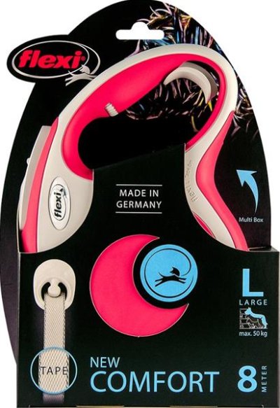 Dokonale navrhnuté dvojfarebné vodítko Vás upúta na prvý pohľad. New Comfort ponúka všetky funkcie, ktoré potrebujete a preto si ho čoskoro zamilujete! Vylepšený brzdový systém s krátkym zdvihom umožňuje viac kontroly, ergonomické držadlo je nastaviteľné podľa veľkosti ruky (od veľkosti M). Možno pridať aj Multi Box na ukladanie maškrty či sáčkov (od veľkosti S). Rodinná firma flexi vyrába výhradne na území Nemecka. V závode v Bargteheide pri Hamburgu vzniká všetko, počnúc návrhom až po výrobu vysoko kvalitných vodítok – Made in Germany. Firma flexi je vynálezcom samonavíjacieho vodítka a jednotkou na svetovom trhu, exportuje do viac ako 90 krajín sveta. Originálne samonavíjacie vodítka flexi sa vyznačujú patentovaným, po technickej stránke najmodernejším pružinovým systémom a komfortným ovládaním. Sú vyrábané z vysoko kvalitných materiálov, exkluzívne manuálne spracované a zostavené. Vodítka prechádzajú pred expedíciou mnohými kontrolami kvality. Veľkosť: L – vhodné pre psy s hmotnosťou do 60 kg. Typ vodítka: Navíjací – opasok. Dĺžka opasku/lanka: 8 m Farba: červená
