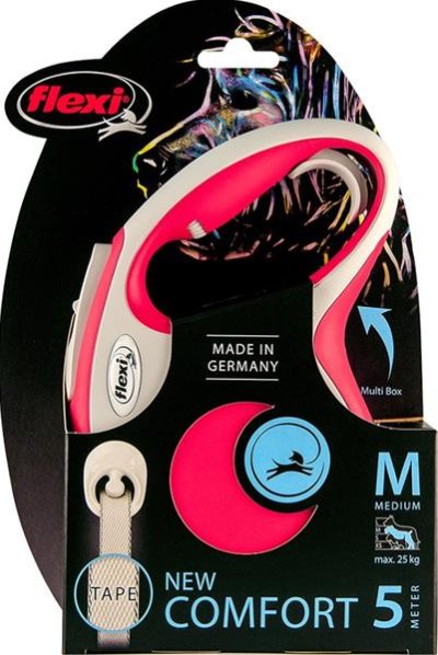 Dokonale navrhnuté dvojfarebné vodítko Vás upúta na prvý pohľad. New Comfort ponúka všetky funkcie, ktoré potrebujete a preto si ho čoskoro zamilujete! Vylepšený brzdový systém s krátkym zdvihom umožňuje viac kontroly, ergonomické držadlo je nastaviteľné podľa veľkosti ruky (od veľkosti M). Možno pridať aj Multi Box na ukladanie maškrty či sáčkov (od veľkosti S). Rodinná firma flexi vyrába výhradne na území Nemecka. V závode v Bargteheide pri Hamburgu vzniká všetko, počnúc návrhom až po výrobu vysoko kvalitných vodítok – Made in Germany. Firma flexi je vynálezcom samonavíjacieho vodítka a jednotkou na svetovom trhu, exportuje do viac ako 90 krajín sveta. Originálne samonavíjacie vodítka flexi sa vyznačujú patentovaným, po technickej stránke najmodernejším pružinovým systémom a komfortným ovládaním. Sú vyrábané z vysoko kvalitných materiálov, exkluzívne manuálne spracované a zostavené. Vodítka prechádzajú pred expedíciou mnohými kontrolami kvality. Veľkosť: M – vhodné pre psy s hmotnosťou do 25 kg. Typ vodítka: Navíjací – opasok. Dĺžka opasku/lanka: 5 m Farba: červená