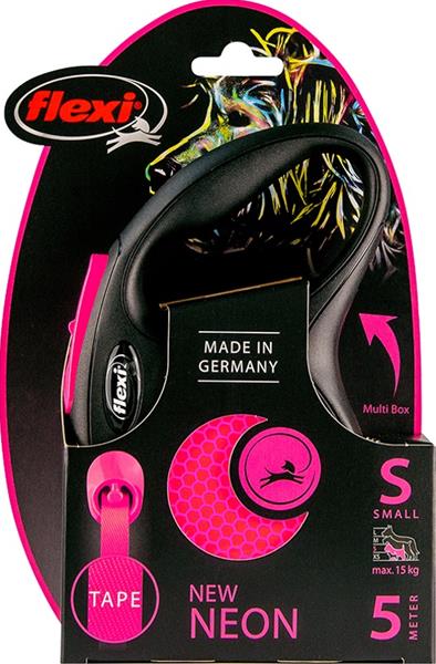 New Neon je vynikajúce vodítko, ktoré vďaka reflexným nálepkám a neónovo sfarbeným prvkom vyniká za všetkých poveternostných podmienok. Reflexné nálepky odrážajú svetlomety vo vzdialenosti viac ako 150 m. Vďaka neónovo sfarbeným prvkom ste lepšie videní, ste vo väčšom bezpečí! Vy a Váš pes patríte k sebe ako jeden tím! Ľudia Vás uvidia už z diaľky. Vylepšený brzdový systém s krátkym zdvihom umožňuje viac kontroly. Možno pridať (od veľkosti S) aj Multi Box na ukladanie maškrty či sáčkov. Rodinná firma flexi vyrába výhradne na území Nemecka. V závode v Bargteheide pri Hamburgu vzniká všetko, počnúc návrhom až po výrobu vysoko kvalitných vodítok – Made in Germany. Firma flexi je vynálezcom samonavíjacieho vodítka a jednotkou na svetovom trhu, exportuje do viac ako 90 krajín sveta. Originálne samonavíjacie vodítka flexi sa vyznačujú patentovaným, po technickej stránke najmodernejším pružinovým systémom a komfortným ovládaním. Sú vyrábané z vysoko kvalitných materiálov, exkluzívne manuálne spracované a zostavené. Vodítka prechádzajú pred expedíciou mnohými kontrolami kvality. Veľkosť: S – vhodné pre psy s hmotnosťou do 15 kg. Typ vodítka: Navíjací – opasok. Dĺžka opasku/lanka: 5 m Farba: ružová