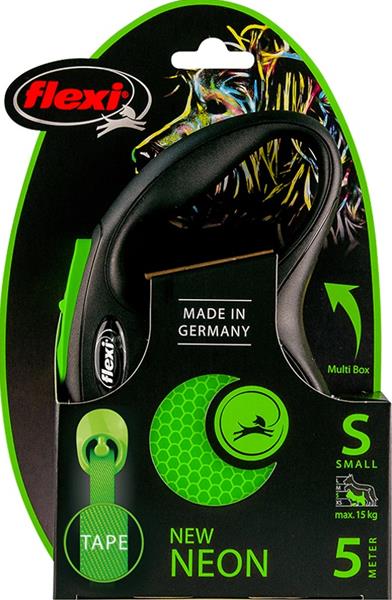 New Neon je vynikajúce vodítko, ktoré vďaka reflexným nálepkám a neónovo sfarbeným prvkom vyniká za všetkých poveternostných podmienok. Reflexné nálepky odrážajú svetlomety vo vzdialenosti viac ako 150 m. Vďaka neónovo sfarbeným prvkom ste lepšie videní, ste vo väčšom bezpečí! Vy a Váš pes patríte k sebe ako jeden tím! Ľudia Vás uvidia už z diaľky. Vylepšený brzdový systém s krátkym zdvihom umožňuje viac kontroly. Možno pridať (od veľkosti S) aj Multi Box na ukladanie maškrty či sáčkov. Rodinná firma flexi vyrába výhradne na území Nemecka. V závode v Bargteheide pri Hamburgu vzniká všetko, počnúc návrhom až po výrobu vysoko kvalitných vodítok – Made in Germany. Firma flexi je vynálezcom samonavíjacieho vodítka a jednotkou na svetovom trhu, exportuje do viac ako 90 krajín sveta. Originálne samonavíjacie vodítka flexi sa vyznačujú patentovaným, po technickej stránke najmodernejším pružinovým systémom a komfortným ovládaním. Sú vyrábané z vysoko kvalitných materiálov, exkluzívne manuálne spracované a zostavené. Vodítka prechádzajú pred expedíciou mnohými kontrolami kvality. Veľkosť: S – vhodné pre psy s hmotnosťou do 15 kg. Typ vodítka: Navíjací – opasok. Dĺžka opasku/lanka: 5 m Farba: zelená