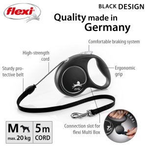 Čierna je späť! Vodítko z radu flexi® Black Design upúta pozornosť na prvý pohľad. Výrazné farby elegantne kontrastujú s čiernym puzdrom. Moderný dizajn je možné zároveň kombinovať s praktickými doplnkami flexi®.