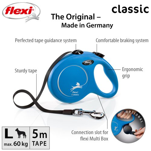 Vodítka flexi® Classic ponúkajú pohodlný úchop, odolný navíjací systém aj kvalitný, bezpečný a intuitívny brzdový systém, ktorý v zlomku sekundy zastaví pohyb psa. Pre ľahké upevnenie vodidla k obojku alebo postroju je vodítko opatrené chrómovanou karabínou. Samozrejmosťou je zdokonalený výstup pásky, ktorý zaisťuje manipuláciu v ľubovoľnom smere bez zasekávania - potvrdené nespočetnými testami.