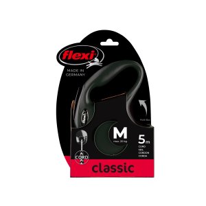 Vodítka flexi® classic ponúkajú pohodlný úchop, odolný navíjací systém aj kvalitný, bezpečný a intuitívny brzdový systém, ktorý v zlomku sekundy zastaví pohyb psa. Pre ľahké upevnenie vodidla k obojku alebo postroju je vodítko opatrené chrómovanou karabínou.