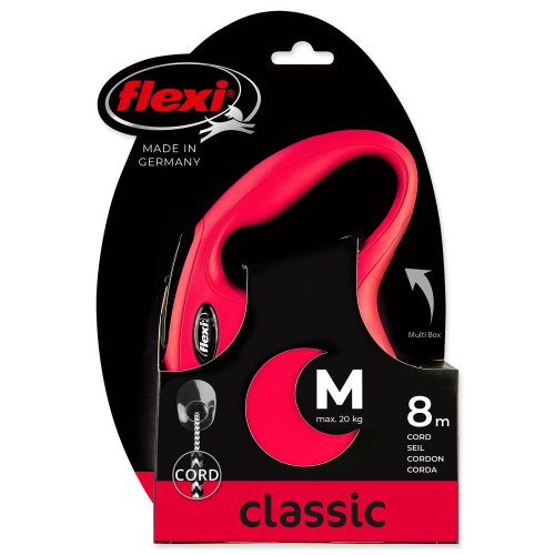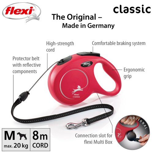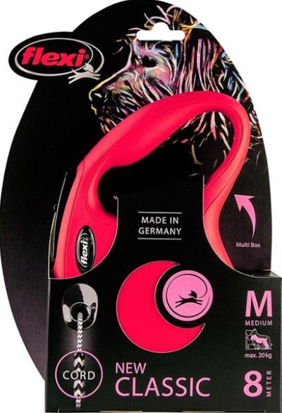 Vodítka flexi® classic ponúkajú pohodlný úchop, odolný navíjací systém aj kvalitný, bezpečný a intuitívny brzdový systém, ktorý v zlomku sekundy zastaví pohyb psa. Pre ľahké upevnenie vodidla k obojku alebo postroju je vodítko opatrené chrómovanou karabínou.