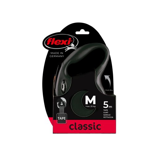 Vodítka flexi® classic ponúkajú pohodlný úchop, odolný navíjací systém aj kvalitný, bezpečný a intuitívny brzdný systém, ktorý v zlomku sekundy zastaví pohyb psa. Pre ľahké upevnenie vodidla k obojku alebo postroju je vodítko opatrené chrómovanou karabínou. Samozrejmosťou je zdokonalený výstup pásky, ktorý zaisťuje manipuláciu v ľubovoľnom smere bez zasekávania - potvrdené nespočetnými testami.