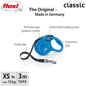 Vodítka flexi® classic ponúkajú pohodlný úchop, odolný navíjací systém aj kvalitný, bezpečný a intuitívny brzdový systém, ktorý v zlomku sekundy zastaví pohyb psa. Pre ľahké upevnenie vodidla k obojku alebo postroju je vodítko opatrené chrómovanou karabínou. Samozrejmosťou je zdokonalený výstup pásky, ktorý zaisťuje manipuláciu v ľubovoľnom smere bez zasekávania - potvrdené nespočetnými testami.