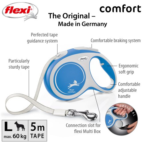 Pohodlné a vďaka svojmu dokonale zladenému dizajnu aj unikátne - to je vodítko flexi® c omfort , ktoré ponúka Vášmu štvornohému priateľovi všetko, čo psy milujú: pohyb, pohyb a ešte raz pohyb! Vás určite poteší extra pohodlná, mäkká rukoväť (vo veľkosti M a L je navyše nastaviteľná) aj zdokonalený výstup a vedenie pásky všetkými smermi bez zasekávania. Na každej prechádzke oceníte aj bezpečný a intuitívny brzdový systém, ktorý v zlomku sekundy zastaví pohyb psa. Pre ľahké upevnenie vodidla k obojku alebo postroju je vodítko opatrené kvalitnou chrómovanou karabínou.