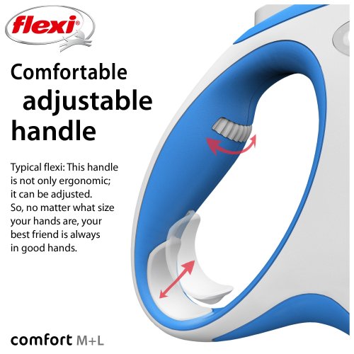 Pohodlné a vďaka svojmu dokonale zladenému dizajnu aj unikátne - to je vodítko flexi® C omfort , ktoré ponúka Vášmu štvornohému priateľovi všetko, čo psy milujú: pohyb, pohyb a ešte raz pohyb! Vás určite poteší extra pohodlná, mäkká rukoväť (vo veľkosti M a L je navyše nastaviteľná) aj zdokonalený výstup a vedenie pásky všetkými smermi bez zasekávania. Na každej prechádzke oceníte aj bezpečný a intuitívny brzdový systém, ktorý v zlomku sekundy zastaví pohyb psa. Pre ľahké upevnenie vodidla k obojku alebo postroju je vodítko opatrené kvalitnou chrómovanou karabínou.