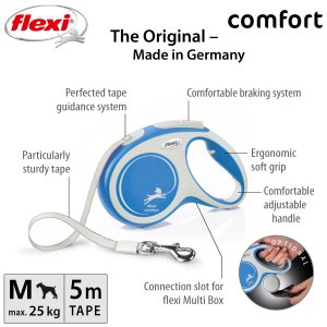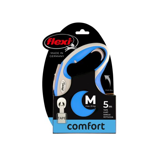 Pohodlné a vďaka svojmu dokonale zladenému dizajnu aj unikátne - to je vodítko flexi® c omfort , ktoré ponúka Vášmu štvornohému priateľovi všetko, čo psy milujú: pohyb, pohyb a ešte raz pohyb! Vás určite poteší extra pohodlná, mäkká rukoväť (vo veľkosti M a L je navyše nastaviteľná) aj zdokonalený výstup a vedenie pásky všetkými smermi bez zasekávania. Na každej prechádzke oceníte aj bezpečný a intuitívny brzdný systém, ktorý v zlomku sekundy zastaví pohyb pásky. Pre ľahké upevnenie vodidla k obojku alebo postroju je vodítko opatrené kvalitnou chrómovanou karabínou. Kompatibilný s praktickými doplnkami flexi® Multi Box a flexi® LED osvetlením (platí pre veľkosť S, M a L).