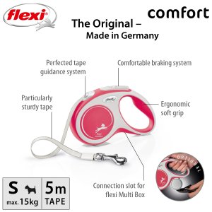 Pohodlné a vďaka svojmu dokonale zladenému dizajnu aj unikátne - to je vodítko flexi® c omfort , ktoré ponúka Vášmu štvornohému priateľovi všetko, čo psy milujú: pohyb, pohyb a ešte raz pohyb! Vás určite poteší extra pohodlná, mäkká rukoväť (vo veľkosti M a L je navyše nastaviteľná) aj zdokonalený výstup a vedenie pásky všetkými smermi bez zasekávania. Na každej prechádzke oceníte aj bezpečný a intuitívny brzdový systém, ktorý v zlomku sekundy zastaví pohyb psa. Pre ľahké upevnenie vodidla k obojku alebo postroju je vodítko opatrené kvalitnou chrómovanou karabínou.