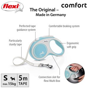 Pohodlné a vďaka svojmu dokonale zladenému dizajnu aj unikátne - to je vodítko flexi® c omfort , ktoré ponúka Vášmu štvornohému priateľovi všetko, čo psy milujú: pohyb, pohyb a ešte raz pohyb! Vás určite poteší extra pohodlná, mäkká rukoväť (vo veľkosti M a L je navyše nastaviteľná) aj zdokonalený výstup a vedenie pásky všetkými smermi bez zasekávania. Na každej prechádzke oceníte aj bezpečný a intuitívny brzdný systém, ktorý v zlomku sekundy zastaví pohyb pásky. Pre ľahké upevnenie vodidla k obojku alebo postroju je vodítko opatrené kvalitnou chrómovanou karabínou. Kompatibilný s praktickými doplnkami flexi® Multi Box a flexi® LED osvetlením (platí pre veľkosť S, M a L).