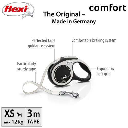 Pohodlné a vďaka svojmu dokonale zladenému dizajnu aj unikátne - to je vodítko flexi® c omfort , ktoré ponúka Vášmu štvornohému priateľovi všetko, čo psy milujú: pohyb, pohyb a ešte raz pohyb! Vás určite poteší extra pohodlná, mäkká rukoväť (vo veľkosti M a L je navyše nastaviteľná) aj zdokonalený výstup a vedenie pásky všetkými smermi bez zasekávania. Na každej prechádzke oceníte aj bezpečný a intuitívny brzdný systém, ktorý v zlomku sekundy zastaví pohyb pásky. Pre ľahké upevnenie vodidla k obojku alebo postroju je vodítko opatrené kvalitnou chrómovanou karabínou. Kompatibilný s praktickými doplnkami flexi® Multi Box a flexi® LED osvetlením (platí pre veľkosť S, M a L).