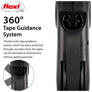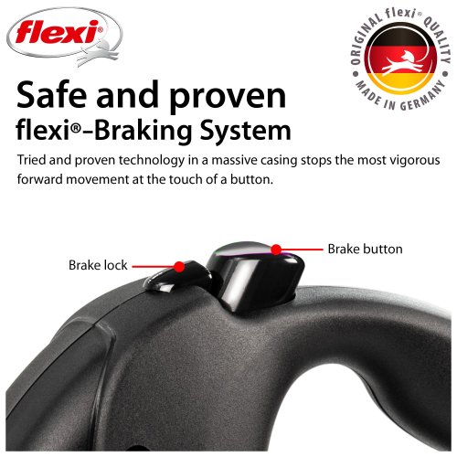 Samonavíjacie vodítko flexi® sa nikdy neprevesí. To Vám umožňuje kedykoľvek zastaviť psa stlačením tlačidla brzdy, bezpečne ho ovládať a priblížiť ho k sebe.