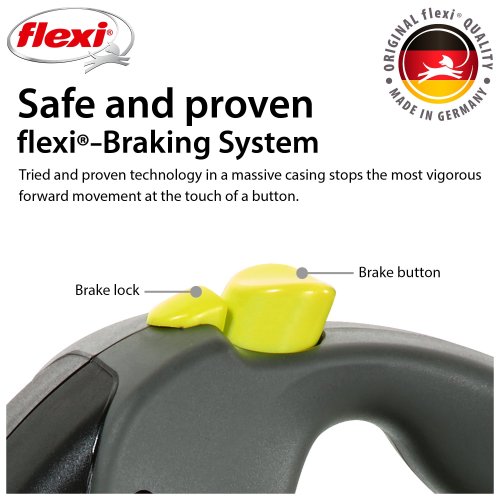 Samonavíjacie vodítko flexi® sa nikdy neprevesí. To Vám umožňuje kedykoľvek zastaviť psa stlačením tlačidla brzdy, bezpečne ho ovládať a priblížiť ho k sebe.