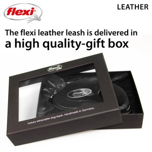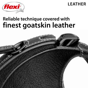 Vnútri osvedčená technológia samonavíjacieho vodidla flexi®. Vonkajší povrch s poťahom z odolnej kozej kože. Vodítko flexi® Leather je ručne vyrábané skúsenými remeselníkmi a dodávané v elegantnej darčekovej krabičke.