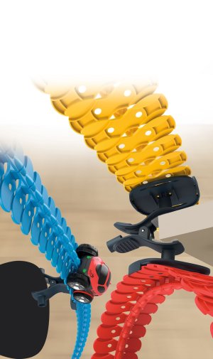 Doplnková FleXtreme sada držiakov pre svet závodnej dráhy Smoby FleXtreme, v ktorom si deti môžu stavať najbláznivejšie dráhy pomocou flexibilných koľajníc s poriadnym stúpaním, klesaním a divokými zákrutami. Súprava obsahuje 2 upevňovacie svorky Multi-Grip a 3 podpery koľajníc. Podpery koľajníc je možné pripevniť k jednému z troch bodov na upevňovacích svorkách, ich použitie poskytuje ešte väčšiu kontrolu v zákrutách a zabraňuje uvoľneniu dráhy v miestach prudkých zákrut. Upevňovací systém svoriek Multi-Grip je ľahko zrozumiteľný aj pre malé deti a umožňuje pripevnenie dráhy k rôznym prekážkam: k stolu, na záclony, k polici, stoličke, na skriňu, na záclonovú tyč, skrátka všade tam, kadiaľ chcete viesť dráhu. Svorky môžu byť upevnené rôznymi spôsobmi a je možné na ne pripevniť až tri podpery koľajníc.