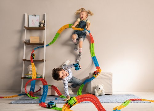 Smoby FleXtreme je úplne nový herný svet, ktorý neobmedzuje detskú kreativitu! Pomocou flexibilných koľajníc môžu deti zostavovať najbláznivejšie závodné dráhy s poriadnym stúpaním, klesaním a divokými zákrutami a vyšantiť sa pri neuveriteľných kaskadérskych kúskoch na dráhe s výkonnými závodnými vozidlami FleXtreme! Štartovaciu sadu FleXtreme ideálne dopĺňa táto FleXtreme sada s ďalšími dielikmi na predĺženie závodnej dráhy. Súprava obsahuje celkom 72 dielikov dráhy v štyroch farbách (každá po 18 kusoch), ktoré je možné zostaviť do celkovej dĺžky 1,72 metra.