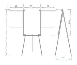 Flipchart YSA PLUS má lakovaný popisovateľný magnetický povrch (možno používať magnety alebo magnetický papier), ktorý je možné popisovať za sucha stierateľnými fixkami . Je tiež vybavený špeciálnou upínacou lištou , ktorá je univerzálna pre všetky typy papierových blokov. Rozmery popisovateľnej plochy sú 70 x 100 cm .