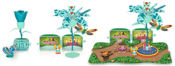 Dva v jednom. Kúzelná kvetina Flóra Magica a farebný motýľ. Postavte ich k oknu. Vplyvom pôsobenia slnečných lúčov sa otvoria. V každom balení sú dve roztomilé figúrky. Otvorte kvetináč a objavte farebný svet Flora Magica. Vystrihnite si farebnú záhradku z blistra a vložte do jej stredu kvetinu a vytvorte si úžasnú hraciu sadu. Motýľa možno pripevniť na list kytičky.