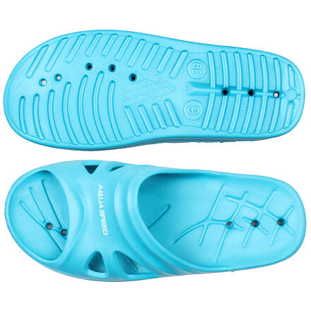 Ultra ľahké a ultra pohodlné dámske šľapky Aqua-Speed Florida sú vyrobené z Phylonu (odolná, extrémne ľahká EVA pena s vynikajúcim tlmením) s protišmykovou úpravou na vonkajšej aj vnútornej strane podošvy pre bezpečný pohyb na mokrom povrchu as ôsmimi otvormi v podošve pre odvetranie chodidiel a odvod vody. Dámske é šľapky Aqua-Speed Florida ponúkame v troch pastelových farbách a vo veľkostiach 36 - 41.
