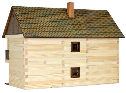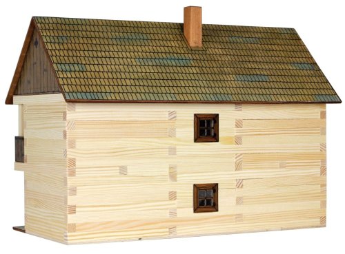 Drevená stavebnica Walachia na zlepenie - Fojtstvo. Zlepovacia stavebnica Walachia sú drevené modely domčekov a stavieb z Valašského kraja v mierke 1:32. Základom sú drevené hranolčeky 9x9 mm ak tomu sú v sade vždy všetky papierové doplnky - okná, dvere, strešné časti atď. Na lepenie sa používa lepidlo Herkules, nie je však súčasťou stavebnice. Priložený je montážny návod a malé kapitoly z histórie ľudovej architektúry. Nižšie je označenie obtiažnosti číslom 1 - 5, pričom 1 je najľahšia. Počet dielov: 298 rozmery: 34x18x23 cm Obtiažnosť: 4