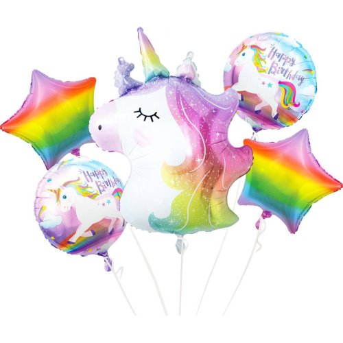 Súprava fóliových balónikov. Jednotlivé kusy v tvare jednorožca.