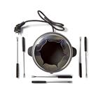 Varič je vybavený nastaviteľným termostatom , s ktorého pomocou prispôsobujete teplotu na prípravu pochúťok. Namiesto pokrievky sa na hrnci nachádza praktický krúžok na odkladanie vidličiek . Gumové nožičky sady sú protišmykové . Spolu so stabilnou konštrukciou vám zaistí väčšiu bezpečnosť počas používania sady. Keďže je hrniec nepriľnavý, jeho čistenie vám zaberie iba chvíľku.