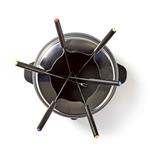 So sadou na fondue Nedis FCFO110EBK6 sa každá oslava premení na kulinársky zážitok. Pripravte si so svojimi členmi rodiny či priateľmi syrové, čokoládové či olejové fondue. Spotrebič navyše môžete využiť ako čínsky kotlík alebo si s jeho pomocou prihriať polievku. Okrem nepriľnavého hrnca s objemom 2,3 l v balení nájdete aj 6 vidličiek . Každá z nich je farebne odlíšená, aby ste si spoznali tú svoju.