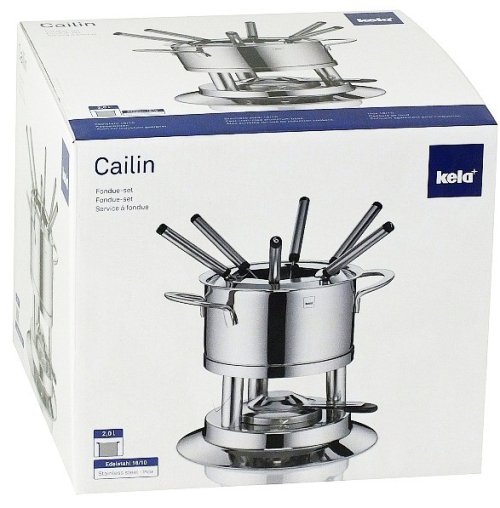 • nerezová oceľ 18/10- Sada obsahuje:- 1 x fondue hrniec z 18/10 nerezovej ocele- 1 x pokrievka 18/10 nerezovej ocele- 1 x nerez stojanček- 6 x fondue vidličiek v 18/10 nerezovej ocele označenej 1-6- 1 x horák na pastu z nerezovej ocele bezpečnostná- výška: 20 cm- priemer: 22 cmLuxusné hrnce a panvice nemeckej značky KELA, rady Cailin so zárukou 5 rokov sú vyrobené z leštenej nerezovej ocele 18/10, majú viacvrstvové termoakumulačné dno, hrúbku steny 0 ,8 mm, sklenené pokrievky a nerezové rukoväte. Sú vhodné pre všetky typy sporákov vrátane indukčných.