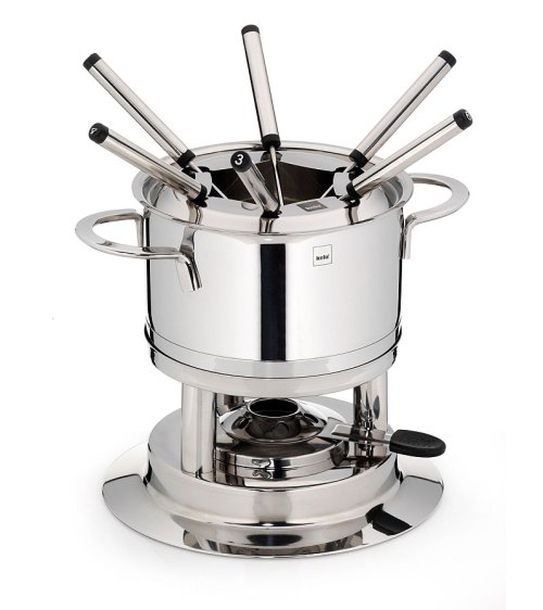- nerezová oceľ 18/10- Sada obsahuje:- 1 x fondue hrniec z 18/10 nerezovej ocele- 1 x pokrievka 18/10 nerezovej ocele- 1 x nerez stojanček- 6 x fondue vidličiek v 18/10 nerezovej ocele označenej 1-6 - 1 x horák …