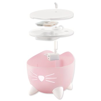Fontána pre mačky je vybavená energeticky úsporným a veľmi tichým čerpadlom, ktoré sa automaticky vypne, keď je hladina vody príliš nízka. Filter s trojitým účinkom zaisťuje dôkladne vyčistenú vodu.