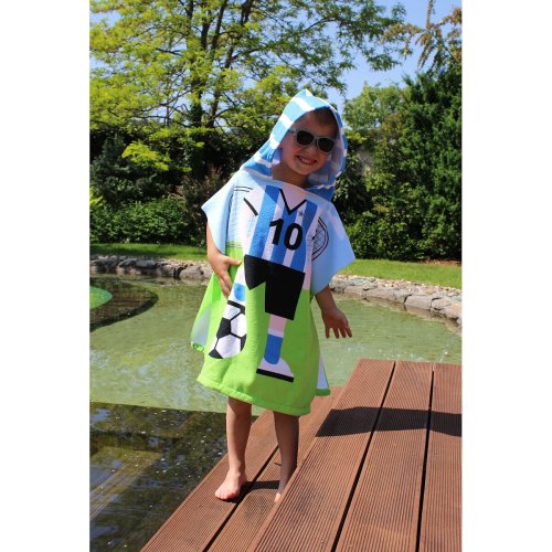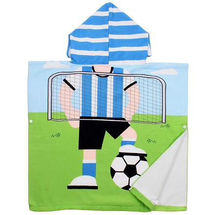 Uterákové pončo pre deti Merco Football je ideálnym doplnkom na pláž či k bazénu. Je vyrobené zo 100% polyesteru, skvele saje a vaše dieťa bude tak behom chvíľky suché. Pončo je ľahké a skladné, zaberie minimum miesta vo vašej taške či kufri. Voľný strih umožňuje ľahké prezliekanie. - materiál: 100% polyester - rozmery: 60 x 60 cm (bez kapucne) - hmotnosť: cca 230 g