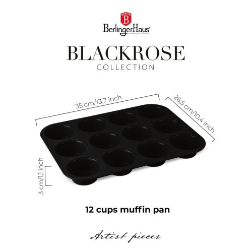 Prineste do svojej kuchyne eleganciu a funkčnosť s našou formou na muffiny z kolekcie Berlinger Haus. Táto forma je navrhnutá tak, aby poskytovala vynikajúci výkon a dlhú životnosť. S kapacitou 12 šálok je ideálny na prípravu rôznych druhov muffinov a cupcakes. Matná čierna farba dodáva forme moderný a štýlový vzhľad, ktorý sa hodí do každej kuchyne.