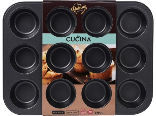 Forma na 12 muffinov je opatrená vysoko odolným antiadhéznym povlakom, ktorý zabraňuje pripaľovaniu. Vhodné do elektrickej, plynovej aj teplovzdušnej rúry, vhodné do umývačky.