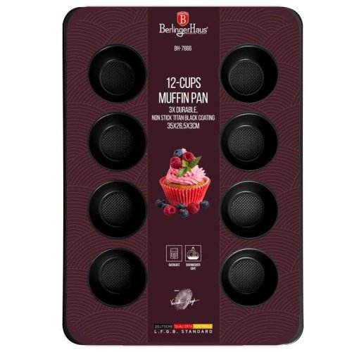 Pripravte sladkú pochúťku pre seba a svoje deti alebo pohostite návštevu. S formou na pečenie Burgundy Metallic Line od značky Berlingerhaus upečiete 12 muffinov naraz . Doprajte si lahodný zákusok ku káve.