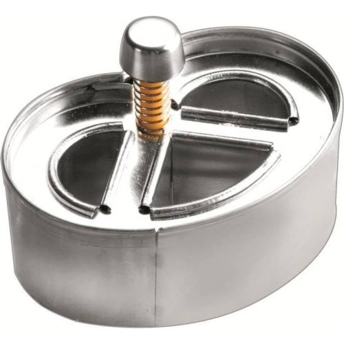 Pocínovaná forma na praclíky s rozmermi 6,5x4,5cm a piestovým vytlačovačom cesta.