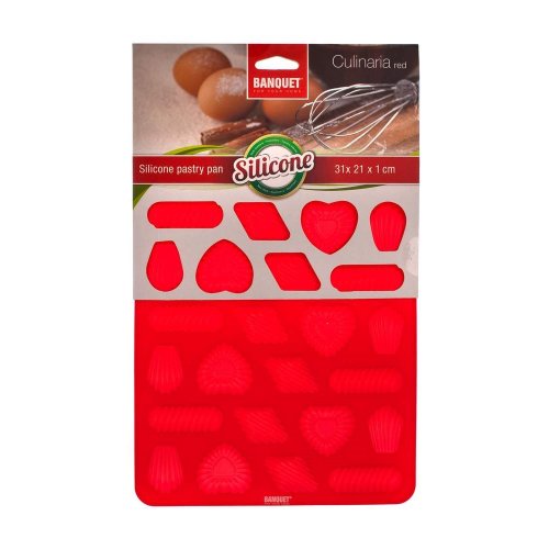 Silikónová forma na pečivo CULINARIA Red, forma je odolná vysokým teplotám (do 230 st. C) a je možné ju používať do elektrickej aj mikrovlnnej rúry. Neviaže chute ani pachy pokrmov, ľahko sa udržuje, možno umývať v umývačke riadu. Silikón je veľmi populárny materiál, ktorý pre svoje jedinečné vlastnosti našiel svoje uplatnenie aj v kuchyni. Vyrábajú sa z neho rôzne druhy foriem na pečenie, vály a valčeky na cesto, stierky, mašlovačky, rôzne druhy kuchynské náčinie a mnohé ďalšie výrobky.